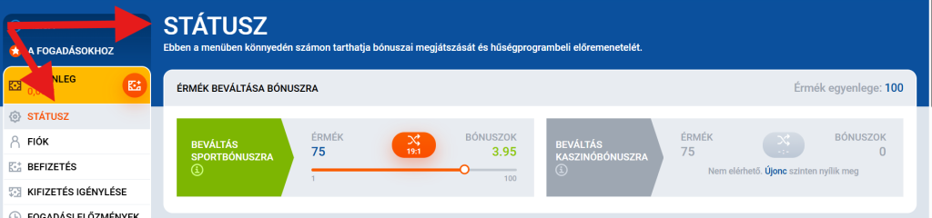 Megoldás: teljesítse a fogadási követelményeket a bónusz menüben.