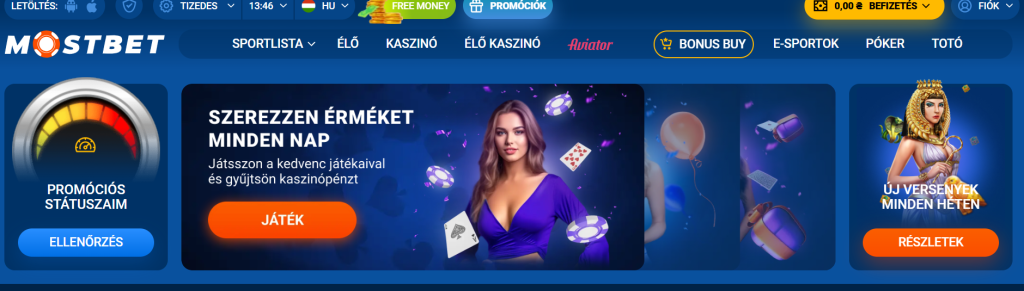 A Mostbet Magyarország 2025-ben az egyik legbőkezűbb bónuszrendszert kínálja az online szerencsejáték-piacon. A platform nemcsak a kezdő játékosokat jutalmazza üdvözlő ajánlatokkal, hanem hosszú távon is motiválja a felhasználókat különféle cashback, free spin, hűségpont és kockázatmentes fogadás promóciókkal. A cél, hogy minden játékos személyre szabott jutalmat kapjon az aktivitása és játékstílusa alapján.