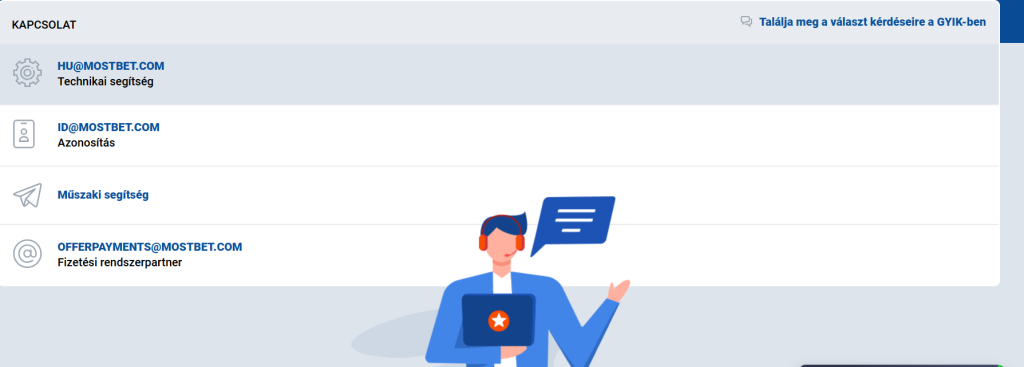 Élő chaten, e-mailben (hu@mostbet.com) vagy Telegramon keresztül, 24/7 elérhetően.